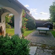 Původní klenutá stáj dnes slouží jako stylová hospůdka , dvůr a přilehlé prostory k parkování, odpočinku a relaxaci.